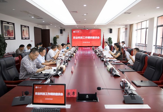 随后,时光辉在西校区贤正楼1号楼311会议室主持召开了农业科技工作座谈会。调研组成员、省林业科学研究院、省农业科学院及我校相关单位负责人、有关专家参加会议。