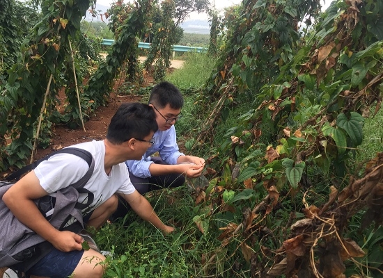 9月3日,山药生产后期,闫见敏、李云洲与农学院副教授李经纬、教师冯文卓在“贵州大学农学院山药绿色防控试点”地块进行测产,通过初步比较,绿色防控地块显著好于空白对照田快。专家们表示“绿色防控技术”可以大幅提高山药产量和品质,将来会进一步大面积推广与示范此技术。李云洲说:“由于当地山药种源为农户自留种蓣,长期无性繁殖,病毒不断累积,因此建立安顺山药种蓣脱毒技术体系与无毒苗繁育基地非常必要。”
