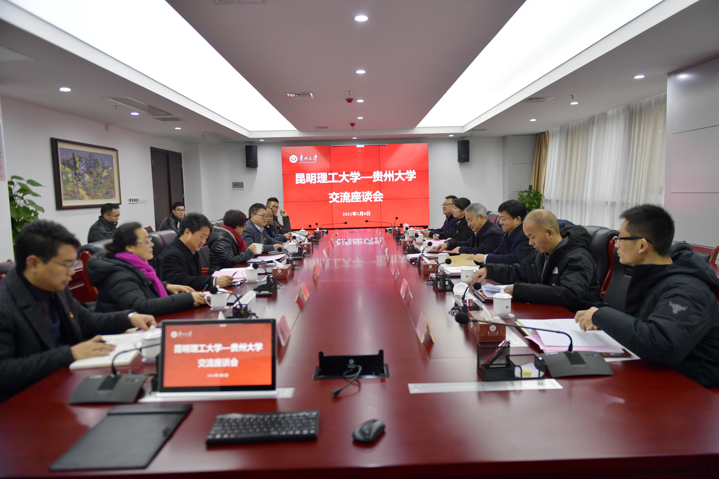 田军重点介绍了昆明理工大学在人才队伍、学科建设、科研项目等方面的成效及经验,并表示,党建是学校建设的中心工作,是学校发展的关键。贵州大学党建工作扎实,成果显著,是值得学习的榜样,欢迎贵州大学领导及有关同志到昆明理工大学进行交流指导。
