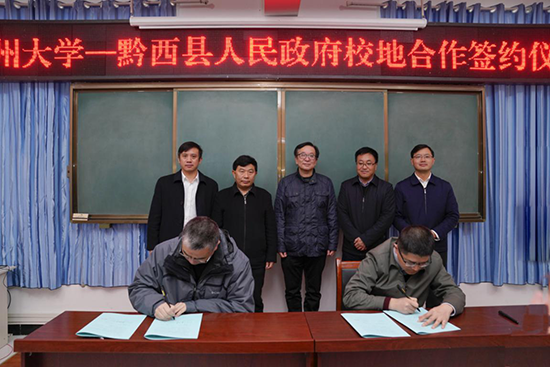签字仪式上,副校长杨松与黔西县代理县长朱宇翔分别代表双方签定《贵州大学——黔西县人民政府校地战略合作框架协议》。根据协议,双方将成立贵州大学、黔西县人民政府校地合作工作领导小组,建立定期会议协商制度,制定合作实施方案,深度开展科技合作、专家委派和人才培养、实习实践基地和招生就业等方面合作。