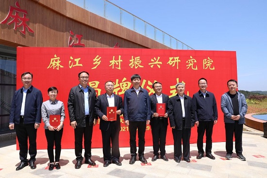 陈利根、宋宝安、王镇义、杨兴涛为麻江乡村振兴研究院揭牌。
