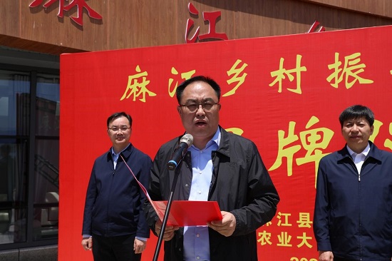 陈利根讲话。他表示,南京农业大学、贵州大学与麻江县签订了“2+1”校地战略合作协议,共同成立乡村振兴研究院,全面服务麻江乡村振兴和区域经济高质量发展,并通过学科交叉融合、专业优势互补等方式,多层面深化合作,协同打造了创新共同体。之后,两校要强化政治站位、引领科技应用、强化人才培养,助力麻江乡村振兴。