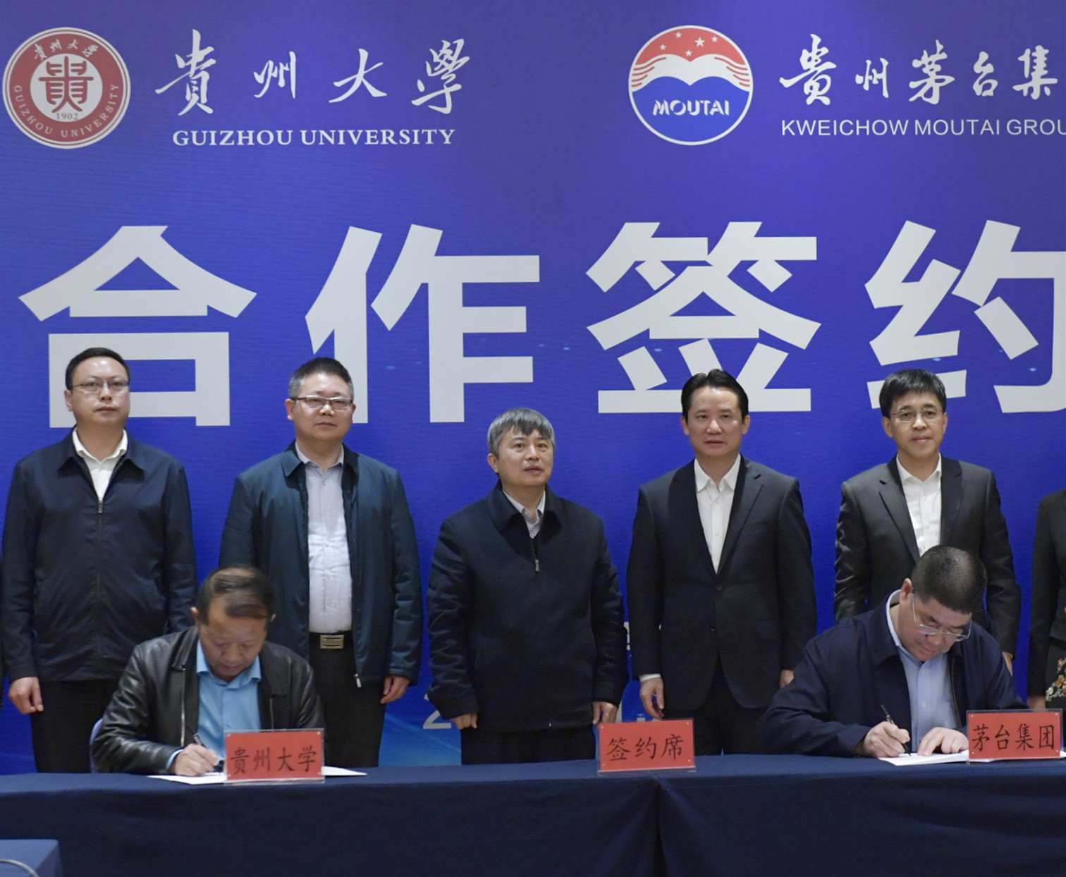 茅台集团党委书记、董事长丁雄军,中国工程院院士、贵州大学校长宋宝安出席签约仪式并讲话。茅台集团党委副书记、总经理李静仁主持签约仪式。茅台集团党委副书记、纪委书记卓玛才让与贵州大学副校长李军旗代表双方签署协议。贵州大学党委常委、组织部部长李昕昌等参加签约仪式。
