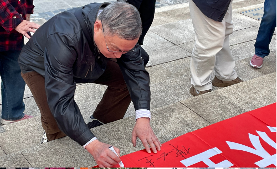 在滨江大道,校友们在印有“贵州大学120周年校庆全球校友校旗接力活动”的横幅上签名,留下自己对母校的真切祝福。吴元方常务副会长表示,校旗传递不仅传递了海内外学子对母校的深情和祝福,更是传递爱心、传递力量、传递贵大精神、传递大家共同的梦想!