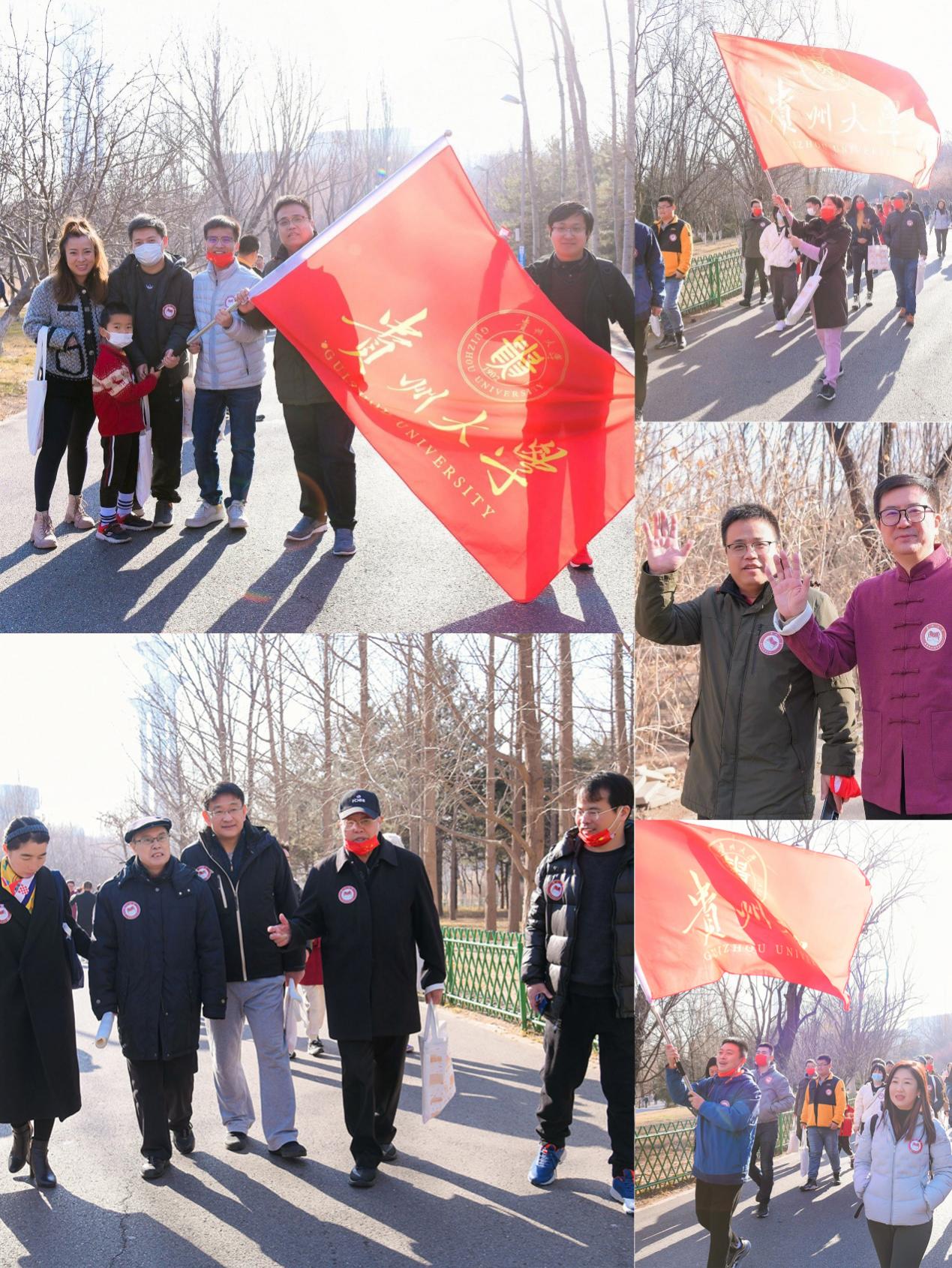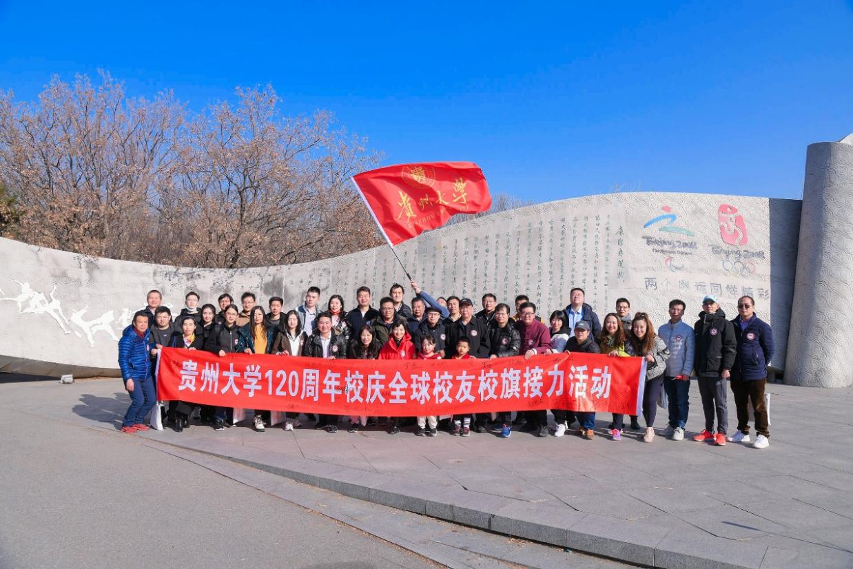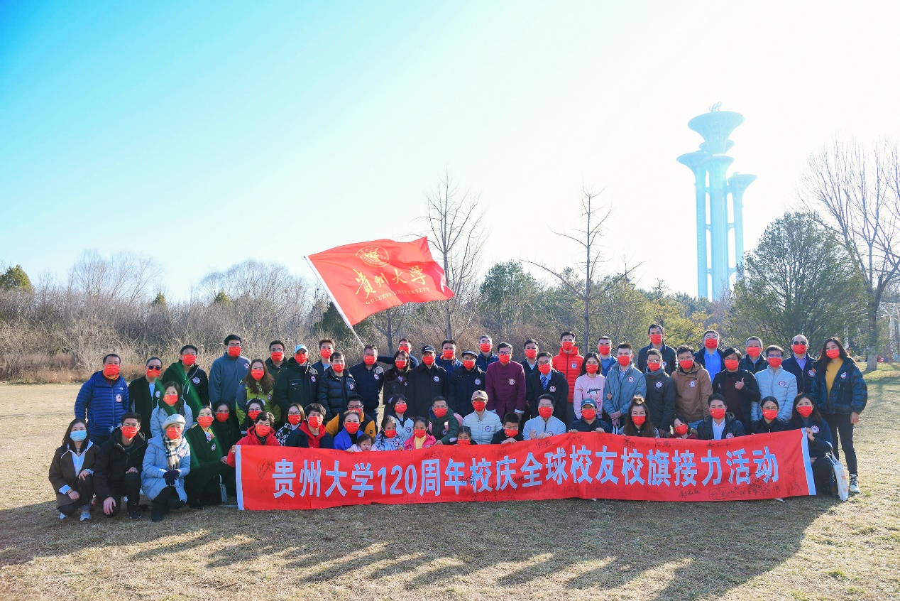 2021年12月5日,贵州大学“百廿贵大 赓续华章”120周年校庆校旗全球接力传递到达北京,开启了校旗传递活动的第四站。在校友总会指导和北京校友分会周密、精心的组织下,会长于洪泽、秘书长陈爱国等近80名校友及家属齐聚北京奥林匹克公园,以快步走接力校旗的方式,表达对母校生日的祝福。其中,81岁高龄的广电总局原副编审彭成梁和78岁的中宣部原办公厅主任薛启亮两位知名校友和多位在京学习的外省市贵大校友也全程参与活动。
