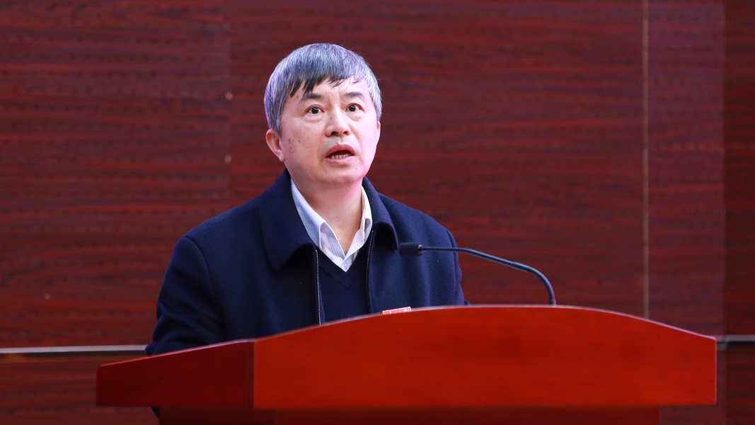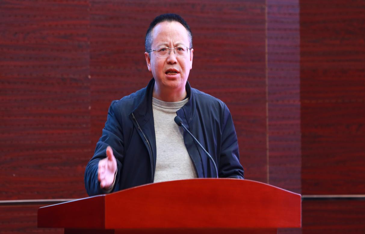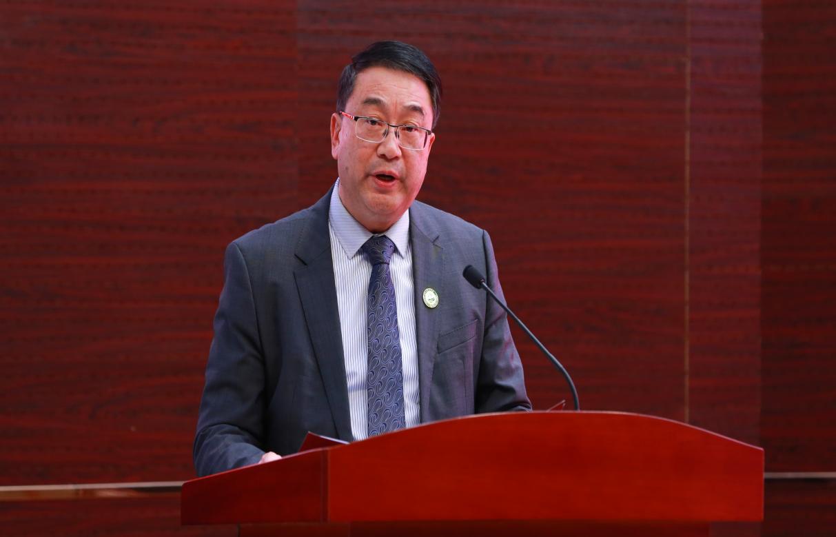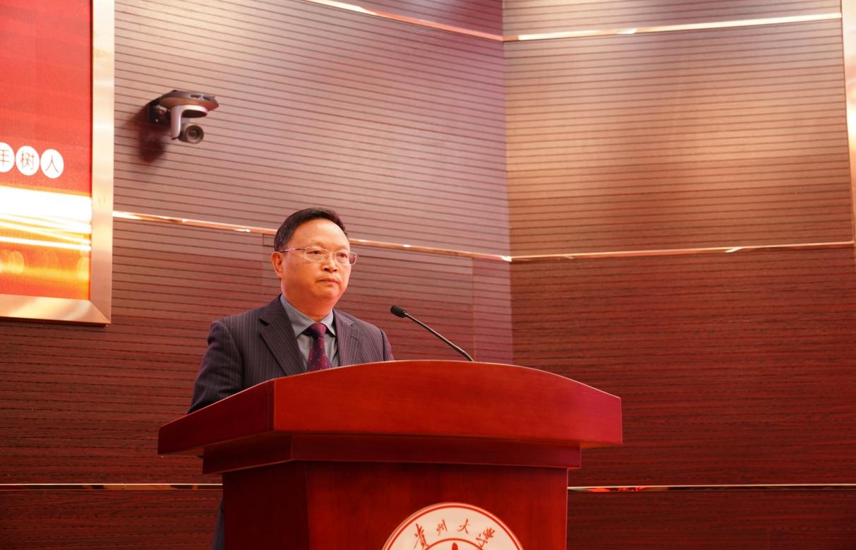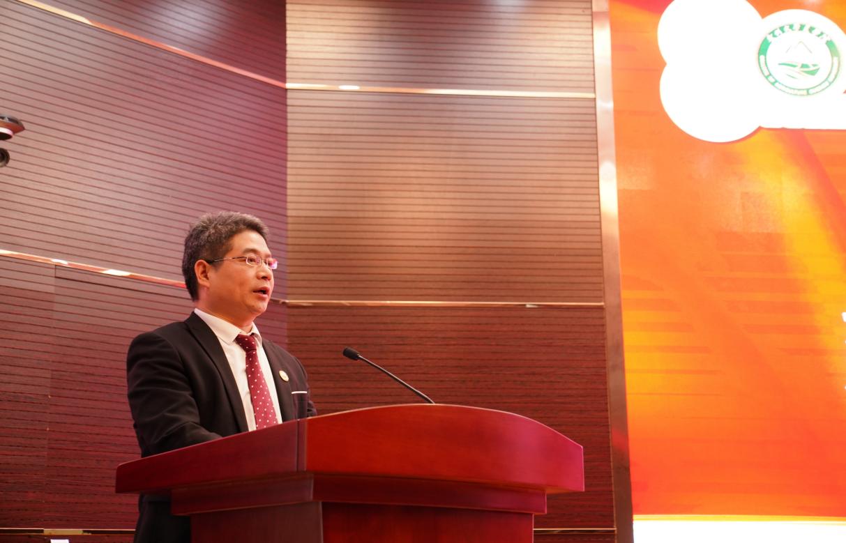 副校长漆思讲话。他希望贵州大学农学院校友分会广泛联络和凝聚校友,加强校友与母校联系,并诚挚邀请校友们在明年贵州大学建校120周年之际回到母校,为母校双一流建设和高质量建设发展建言献策。