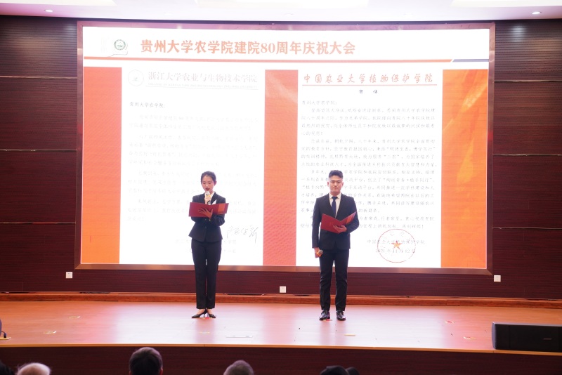 大会宣读了农学院1977级植物保护专业杰出校友、中国科学院院士张克勤,农学院1979级农学专业校友、现任广西壮族自治区政府常务副主席秦如培以及浙江大学农业与生物技术学院、中国农业大学植物保护学院等个人和单位发来的贺电。
