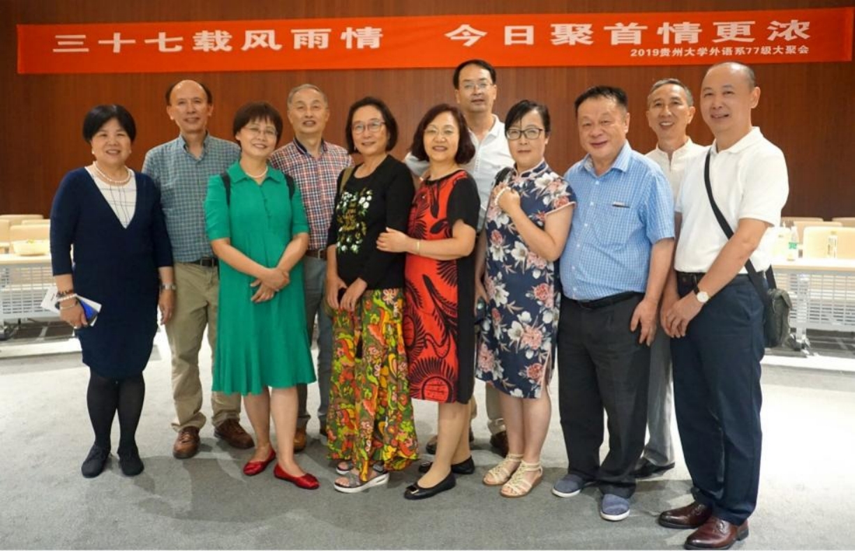 欲流之远者,必浚其泉源。四十二年前,一群布衣,经历十年的文革浩劫,幸运地登上贵州大学七七级外语系的神圣殿堂。这一步的跨越,彻底改变了这批青年的人生和命运。曾记否,校园教室,静锁一庭青春欢歌。林荫小道,眷恋雨润云温,岂知聚散难期,翻成雨恨云愁。巴山夜雨涨秋池,同室共剪西窗烛。学堂论道乔姆斯基语言大师,研习英国乔叟拜伦传世文学佳作。风声、雨声、读书声,家事、国事、天下事,声声共语,那是多么令人向往,激情澎湃的芳华年代。