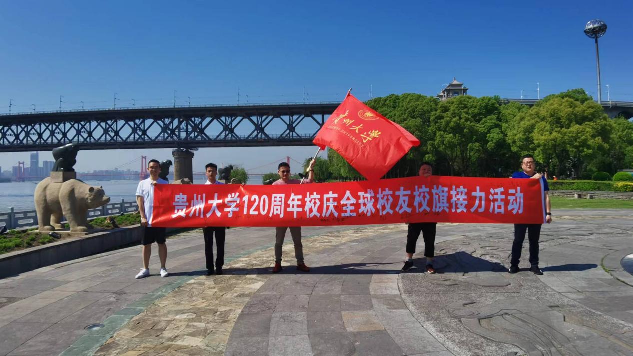 2022年5月4日,为迎接贵州大学即将到来的120周年华诞,在湖北校友梅霞军的组织下,5位贵州大学湖北校友聚齐武汉长江大桥下,开展“百廿贵大 赓续华章”贵州大学校旗全球校友接力传递活动。