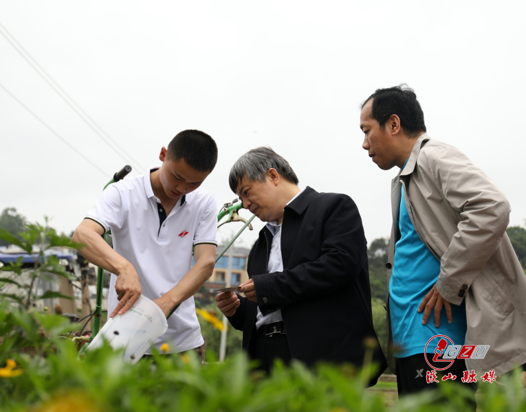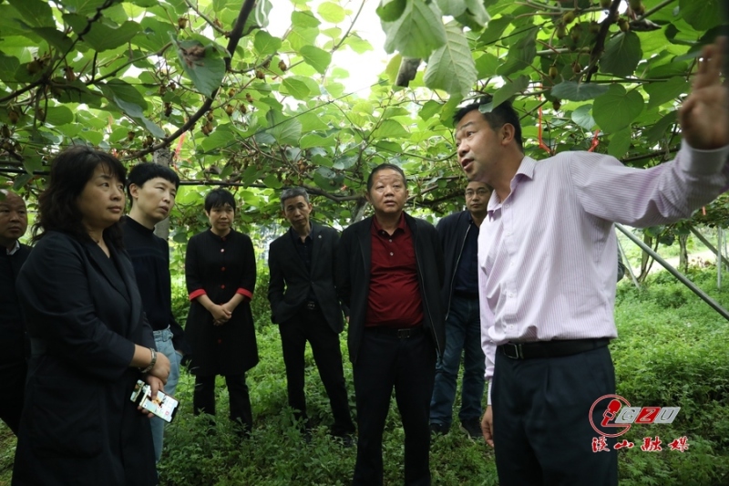 贵州大学副校长李军旗带队实地考察了猕猴桃产区,了解了避雨栽培设施、高效授粉技术示范推广、丰产树形及架型改造示范推广等方面的情况,龙友华对猕猴桃产业团队实地改造带来的瓜果提升、虫害减少以及主要销售模式、猕猴桃差别与优势作了介绍。