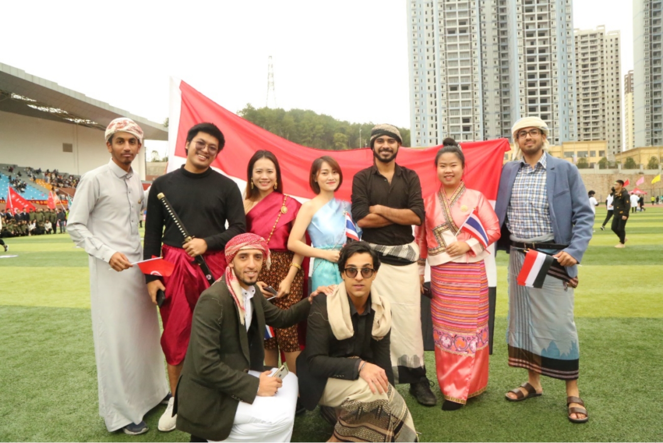 哈玛德(右一)参加贵州大学2019年体育节开幕式