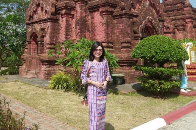 缅甸籍留学生林秀美,贵州大学2020级汉语进修生,目前在缅甸进行线上学习。为拍摄母校120周年生日祝福视频,她去到当地最具特色的佛教圣地,为母校送上诚挚的祝福。她说,虽然是在自己国内线上学习汉语,但她从未放弃努力,汉语能力在不断进步,希望今后能够在贵州大学攻读硕士,能够与亲爱的老师和同学们见面。