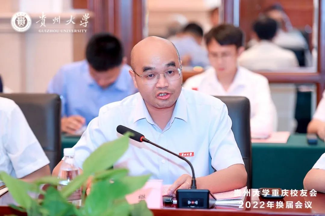 吴攀讲话。他表示,校友永远是学校最宝贵的资源和财富,重庆校友分会成功换届,意味着贵州大学重庆校友工作有了新的起点和新的目标。希望重庆校友分会不断加强自身建设,做实校友服务,持续强化情感交流,充分发挥桥梁纽带作用,鼓励和调动广大校友热情和智慧服务学校,为学校建设发展作出新的更大贡献。在贵州大学建校120周年之际,热诚欢迎重庆校友回到母校,同襄盛典,畅叙友情,同谱新篇。