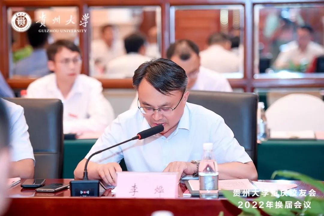 李烨代表贵州大学校友总会宣读《关于同意贵州大学重庆校友会换届的批复》。换届筹备组成员唐伟宣读《贵州大学重庆校友分会章程》。