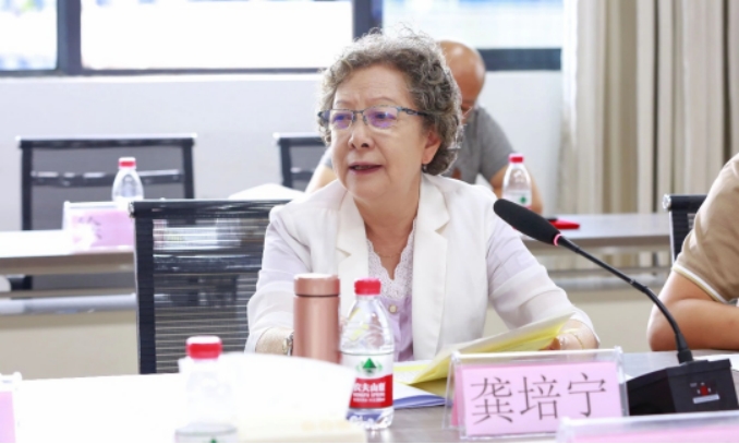 贵州大学1959级物理专业校友、贵州大学原建筑工程系主任龚培宁发言,她介绍了贵州大学建筑学与城乡规划专业的历史沿革,并就学科发展、校企合作等提出建议。