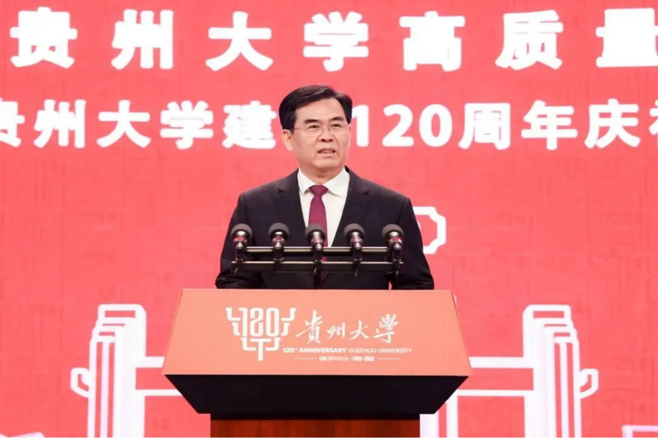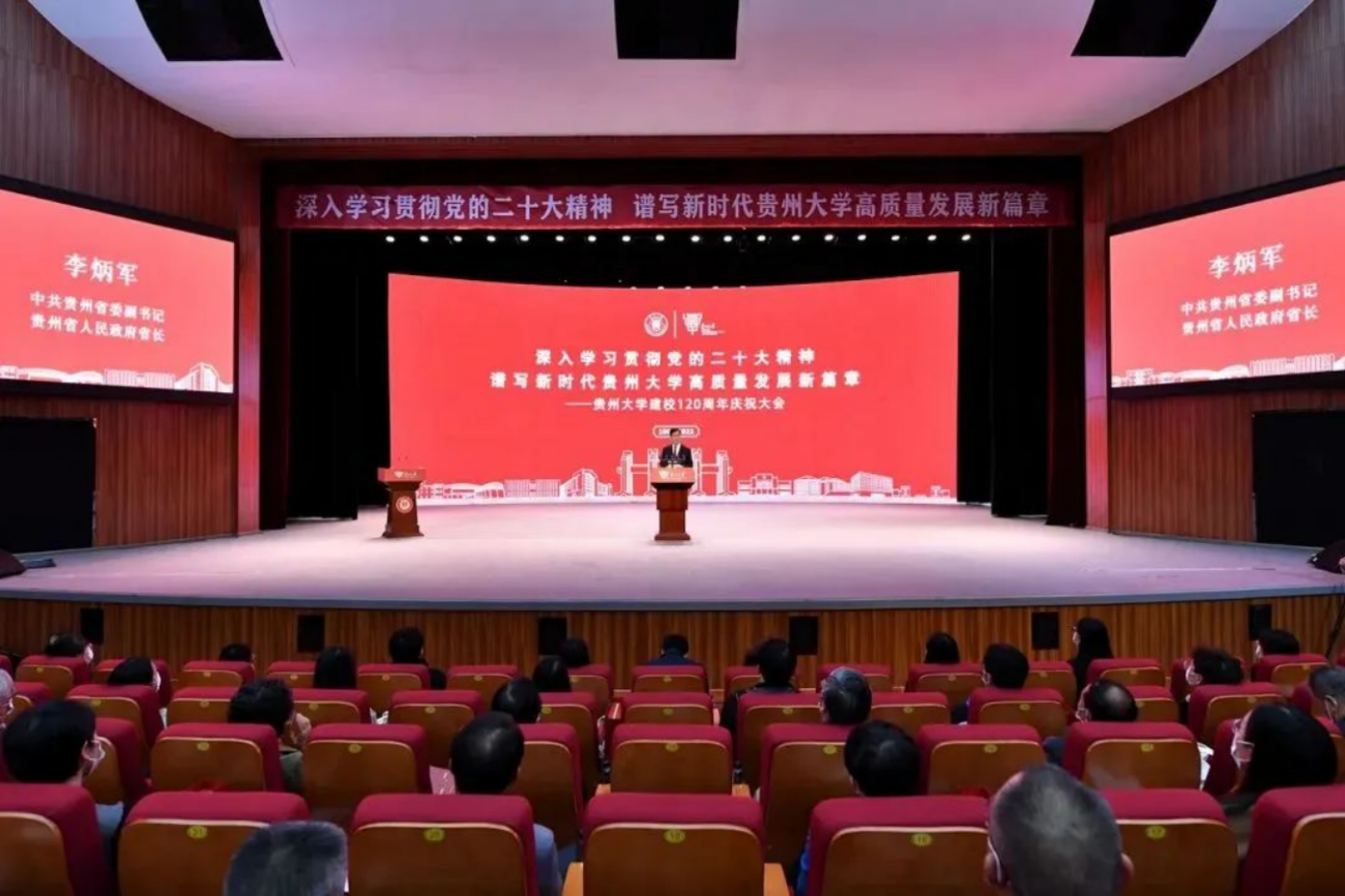 11月18日,贵州大学建校120周年庆祝大会在西校区举行。省委书记、省人大常委会主任谌贻琴向大会致贺信。省委副书记、省长李炳军讲话,教育部副部长孙尧视频致辞,省领导卢雍政、李飞跃、陈坚,老同志龙超云、许正维、陈鸣明、相小青、陈海峰、左定超出席。
