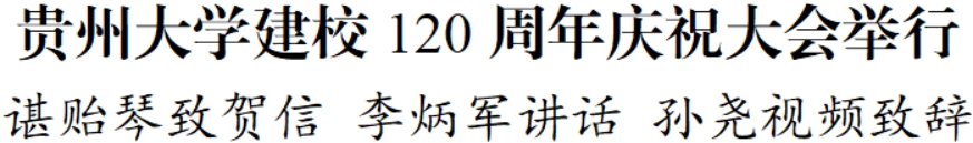 贵州大学建校120周年庆祝大会举行 谌贻琴致贺信 李炳军讲话 孙尧视频致辞