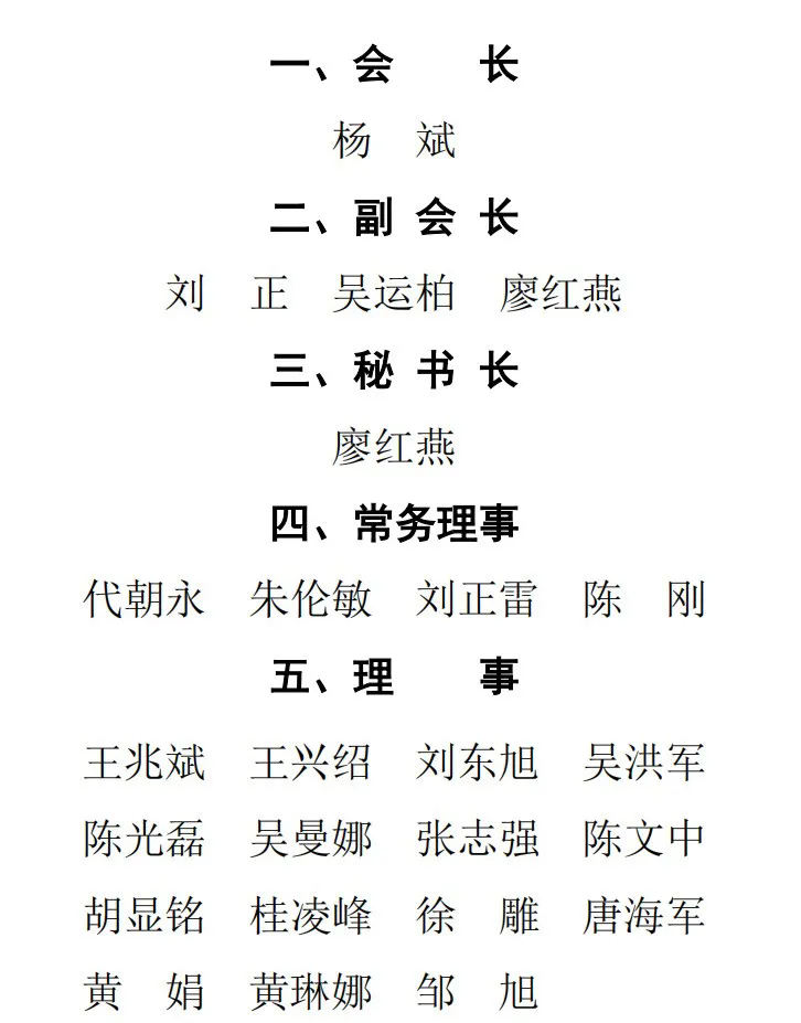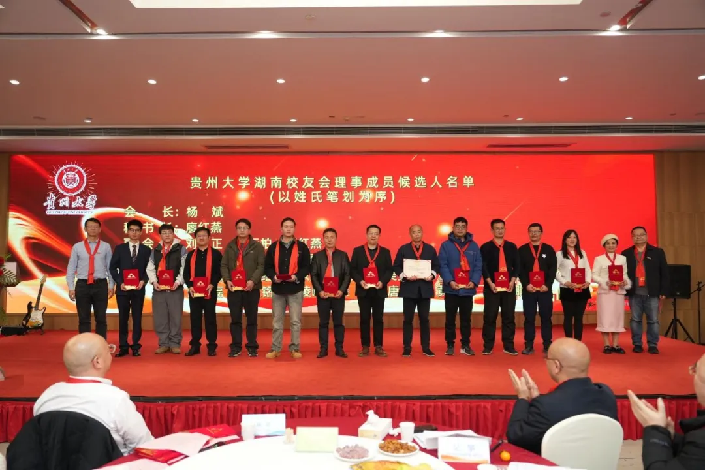 大会选举产生了贵州大学湖南校友会第一届理事会会长、副会长、秘书长、常务理事、理事。1987级硅酸盐专业校友杨斌当选为会长,2000级化学工程与工艺专业校友廖红燕当选为秘书长。