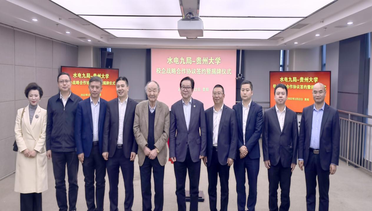 3月22日下午,中国水利水电第九工程局有限公司(以下简称水电九局)—贵州大学校企战略合作签约暨工程技术研究中心揭牌仪式在水电九局国际企业大厦举行。水电九局党委书记、董事长徐鹏程,党委副书记、董事、总经理周正荣,我校党委书记李建军,中国工程院院士、空间结构研究中心主任马克俭,副校长张大林、吴攀出席会议,党委办公室、校长办公室、研究生院、科学技术研究院、对外合作处、资源与环境工程学院、土木工程学院、空间结构研究中心等单位和学院负责人参加会议。