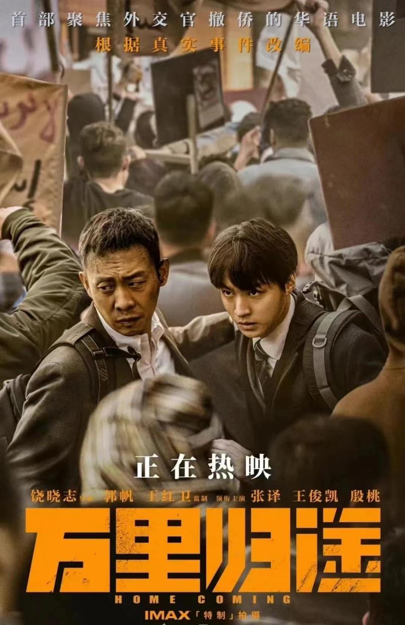 《万里归途》由饶晓志导演,张译、王俊凯、殷桃等人主演。该片根据真实事件改编,讲述的是国外爆发战乱,前驻地外交官宗大伟与外交新人成朗受命前往协助撤侨的故事。
