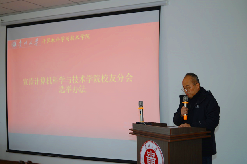 何飞宣读《计算机科学与技术学院校友分会的选举办法》。