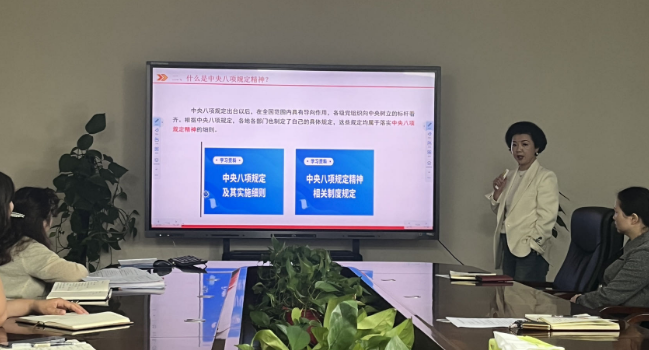 刘颖以《学习领会和贯彻执行中央八项规定精神解读》为题讲授党课。带领全体同志重温了中央八项规定的具体内容,逐条学习理解其核心要义。重点结合当前形势任务与上级党委最新部署要求,深入解读了锲而不舍落实中央八项规定精神的极端重要性和长期艰巨性,使同志们深刻认识到“四风”问题的顽固性、隐蔽性以及持续纠治的必要性,警示全体同志时刻保持清醒头脑,绷紧纪律之弦。